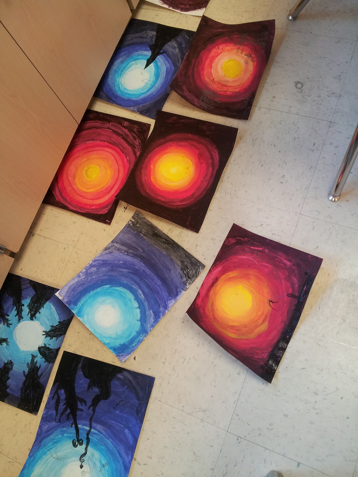 "Sunsets and Moons over Miami" Student Work of Paint Blending amd Value Studies